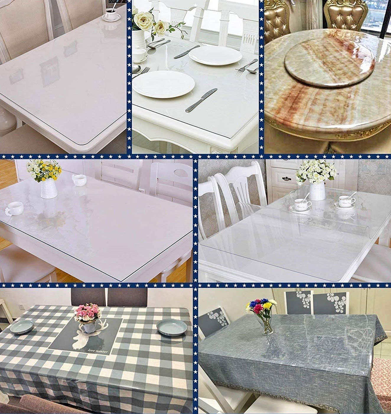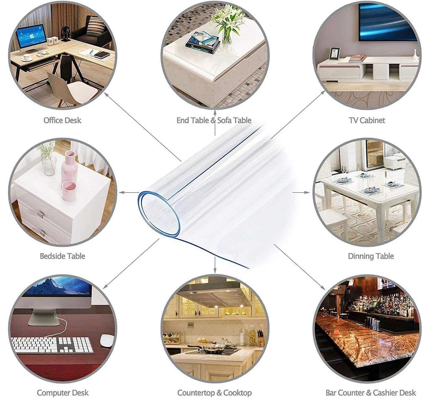 With the thick PVC table furniture protector, desk protective cover,use as tabletop wipeable water & heat resistant clear plastic tablecloth or table runner, wood stain protector,clear hard plastic placemats pad. To better protect your expensive wooden,glass,granite,marble,teak,coffee or bedside or sofa side table,office computer or writing desk,chair floor rug mat,bar or pub dining table,cooktop,from high temperature damaging,scuffs,scratches,hot burns,heating scalds,oil stains,spillage.
